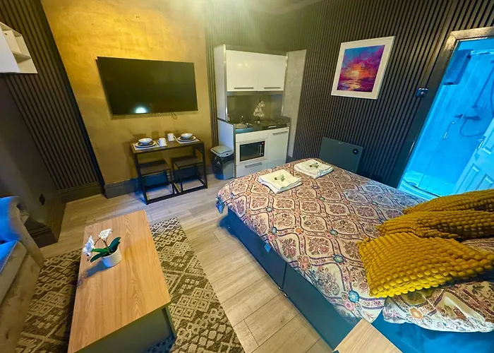 Geniet van het gemak van een kitchenette in Reads Avenue - Luxury Ground Floor Studio - Next Door To H&A Social Club, zodat gasten hun eigen zelfgemaakte maaltijden kunnen bereiden. Blackpool North treinstation ligt binnen een korte wandeling van 20 minuten van deze accommodatie.